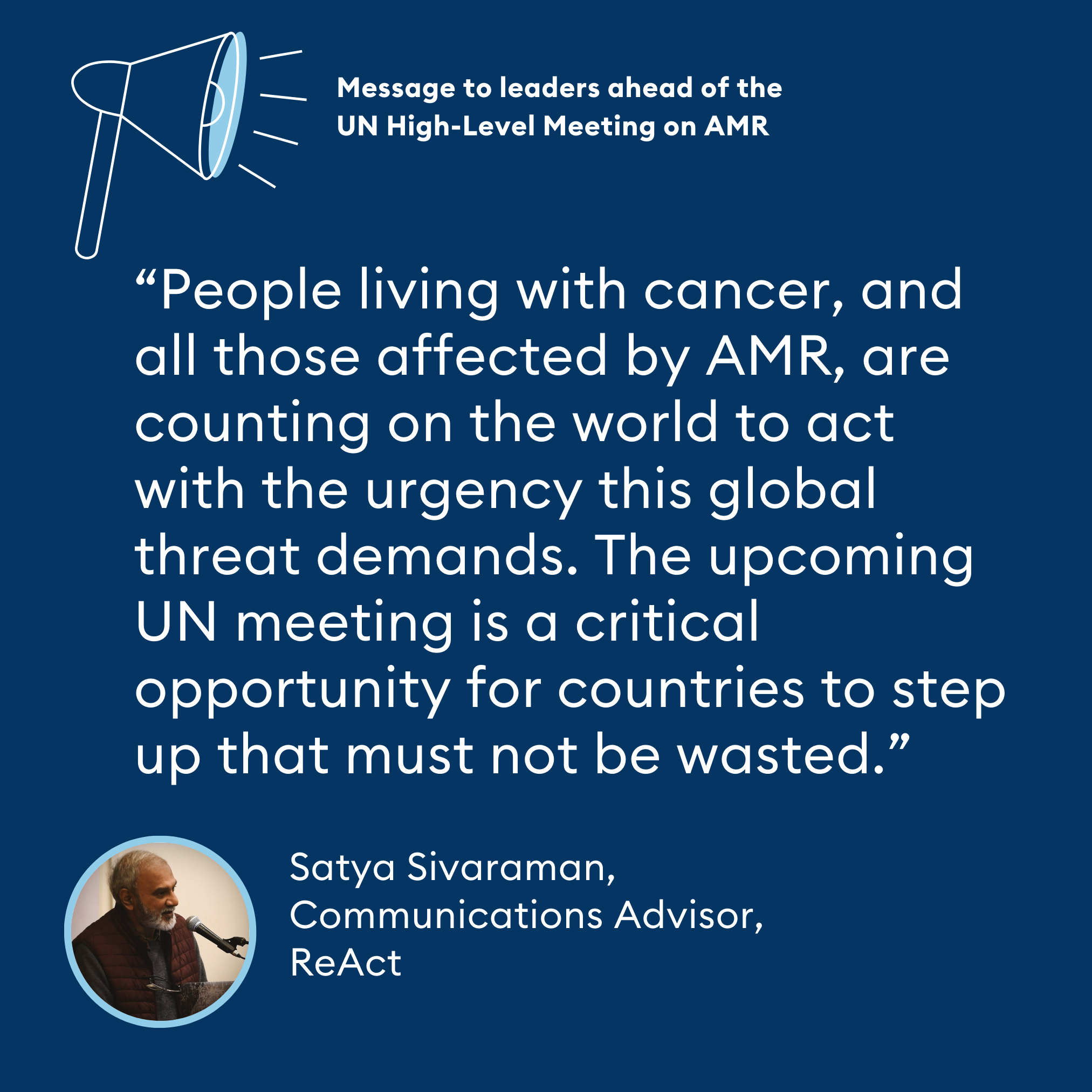 Those with a personal experience of cancer and drug-resistant infections – people living with cancer, their family or friends – are key to addressing drug resistance. By sharing their stories, they lend a human face to the problem, driving home the impact of drug-resistant infections, and help spur global action.
