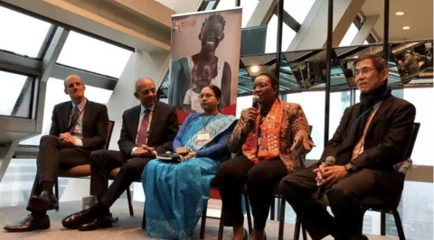 UNGA side event 2018: From l-r Tim Evans, World Bank, Dr Naveen Rao, Rockefeller, Dr Girija Vaidyanathan, Ministry of Health India (Tamil Nash), H.E. Sicily Kariuki, Ministry of Health Kenya, Dr Suwit Wibulpolprasert, Ministry of Public Health, Thailand.