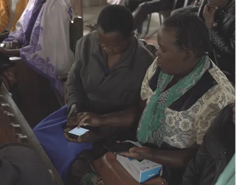 Community health workers in Kenya accessing training courses, launched in partnership with Takeda and the National Cancer Institute of Kenya, via mobile technology.