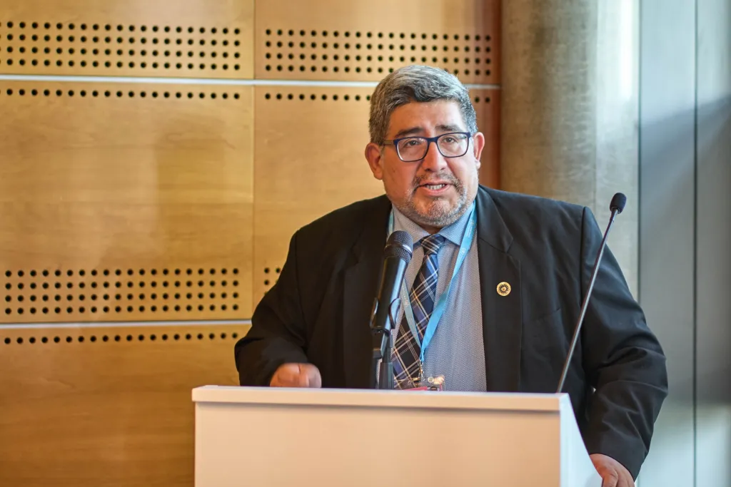 Dr Ronald Alfonso Pérez Escobar, from the Ministry of Health of El Salvador, speaking at a reception of the Access to Oncology Medicines (ATOM) Coalition held at the offices of UICC on Tuesday 28 May during the World Health Assembly. El Salvador is one of the countries where the ATOM Coalition is prioritising its efforts to help ensure that the right cancer medicines reach the right patients at the right time.