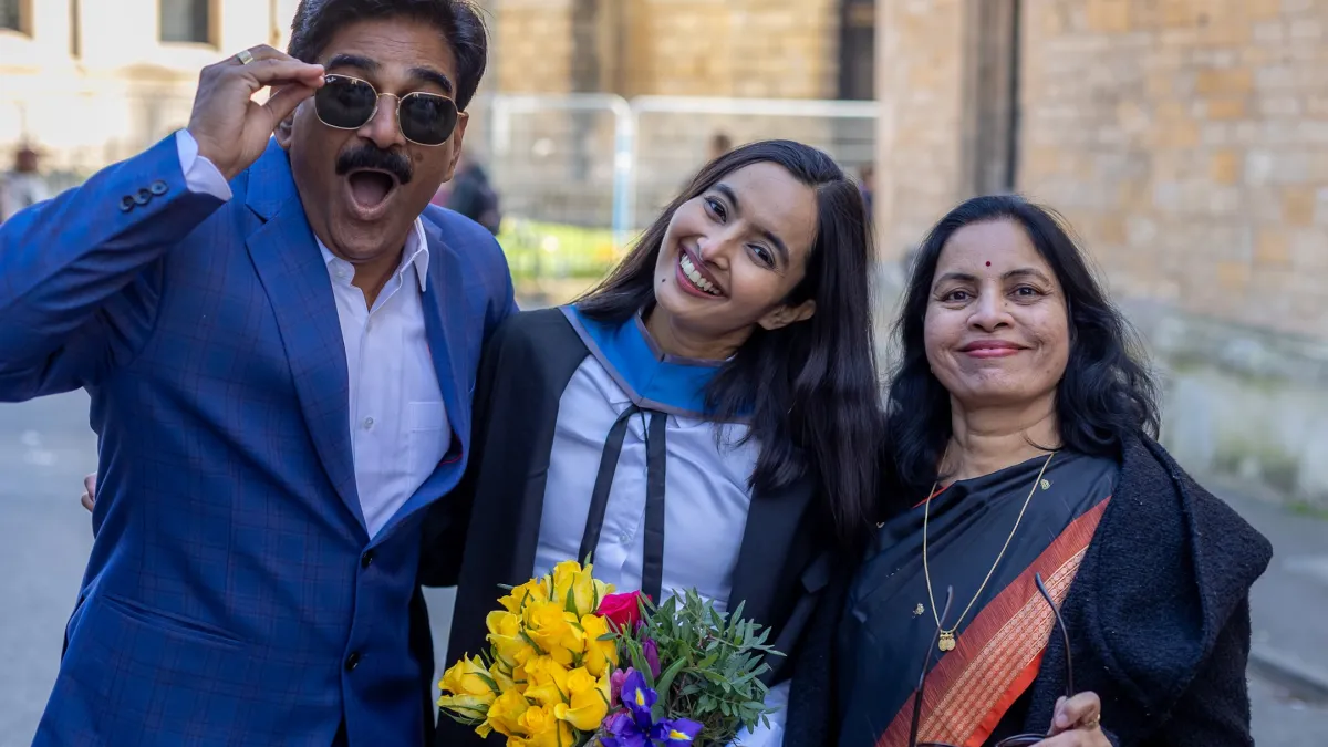 Ms Rasika Bombatkar obtains her Masters Degree at Oxford with her parents after being treated for advanced lung cancer, diagnosed when she was 26.