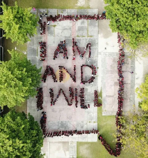 Students from Sharafuddin School have a different type of assembly on World Cancer Day.