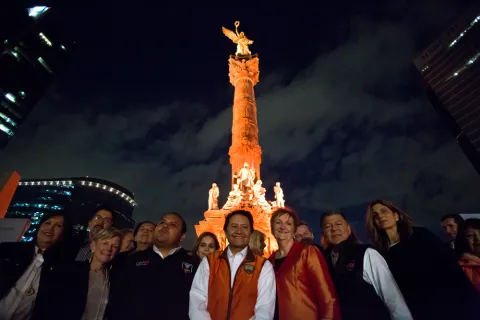 Mexico City Monuments lit up in orange to launch the World Cancer Leaders' Summit