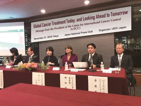 President of the Union for International Cancer Control (UICC), HRH Princess Dina Mired of Jordan, made her first overseas visit since commencing her term as president to Japan from November 19 to 22, 2018 at the invitation of UICC member, UICC-ARO. HRH Princess Dina engaged with various key stakeholders in the cancer community, including representatives of industry, government and academia. In addition to a speech given at the Japanese Foundation for Cancer Research, HRH Princess Dina held a press conference to further raise awareness of the activities of UICC.