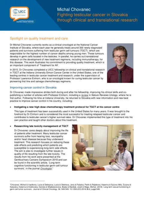 Dr Michal Chovanec currently works as a clinical oncologist at the National Cancer Institute of Slovakia, where each year he generally treats around 300 newly diagnosed patients and survivors suffering from testicular germ cell tumours (TGCT).