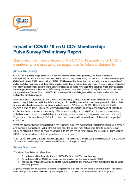 Results of UICC survey with members on financial impact of COVID-19